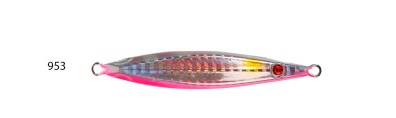 Pequeño jig específico de micro slow jigging con el cuerpo simétrico lateralmente y con el peso centrado, lo que le hace profundizar lentamente y en horizontal. Su pronunciada asimetría dorsiventral (una de