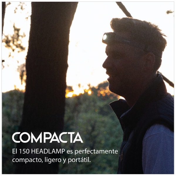 La linterna frontal de 150 lumenes de NEBO es compacta y de perfil bajo. Su haz de luz COB altamente brillante recorre 19 metros. Equipado con su banda elastica, la headlamp 150 es resistente para las condiciones climaticas y para las aventuras mas extremas que se presenten.